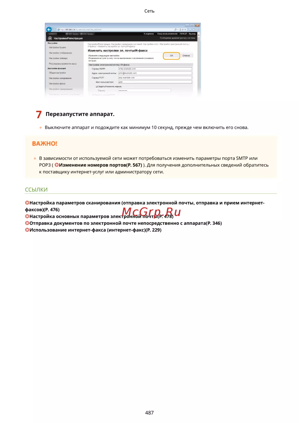 Отправка документов по электронной почте непосредственно с аппарата(P. 346)