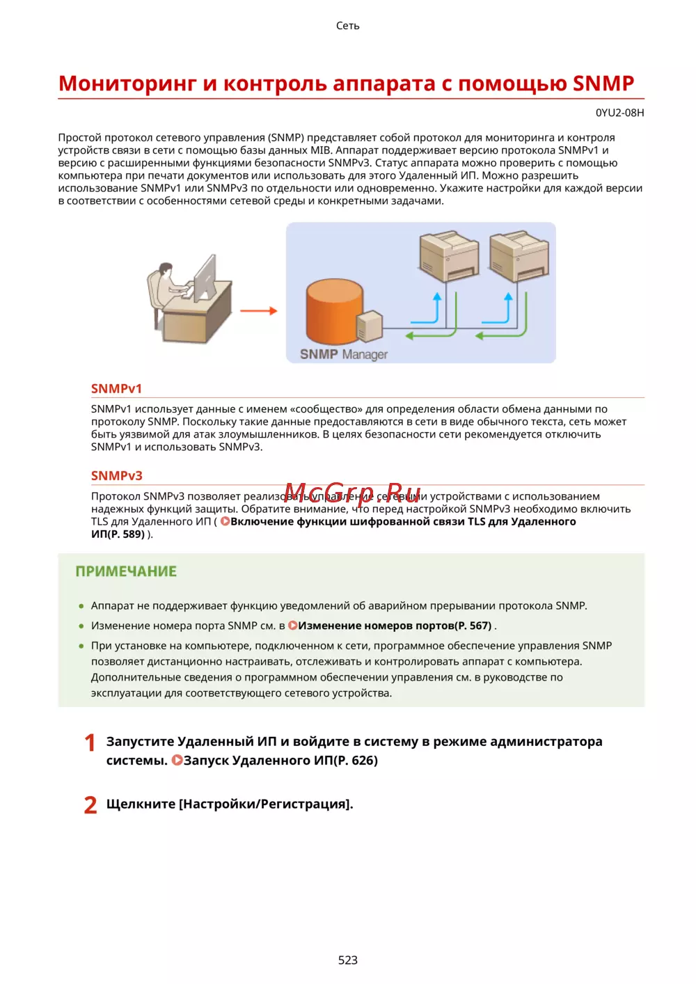 ● Аппарат не поддерживает функцию уведомлений об аварийном прерывании протокола SNMP.