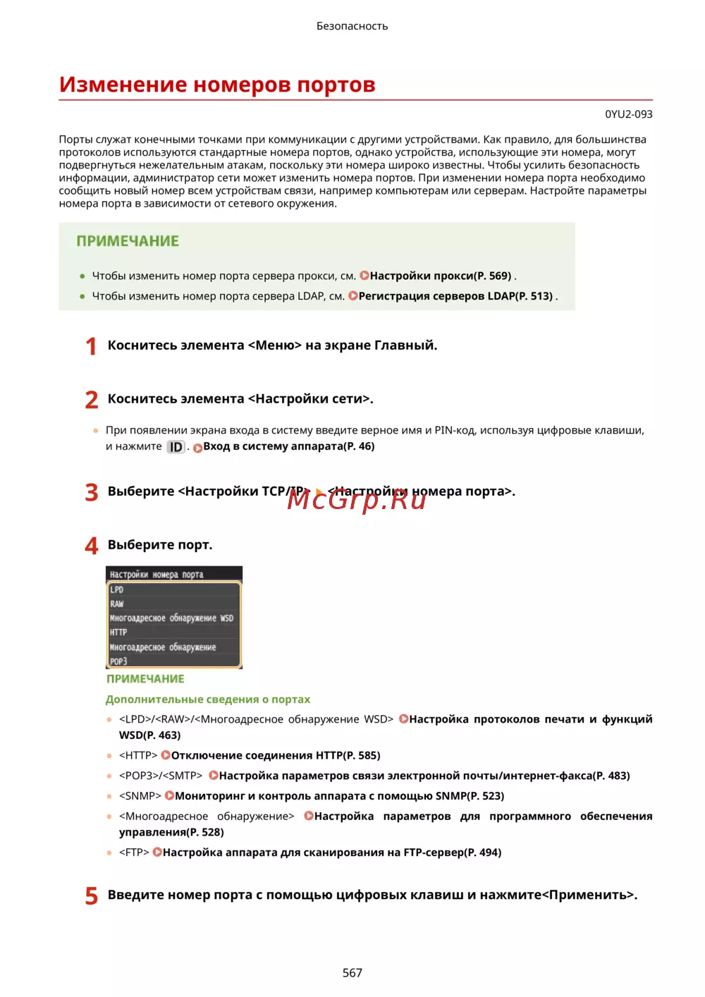 Canon i-Sensys MF416dw Лазерный \ светодиодный, Серый, Черно-белая, А4 — изменение номеров портов для повышения безопасности сети [577/949]