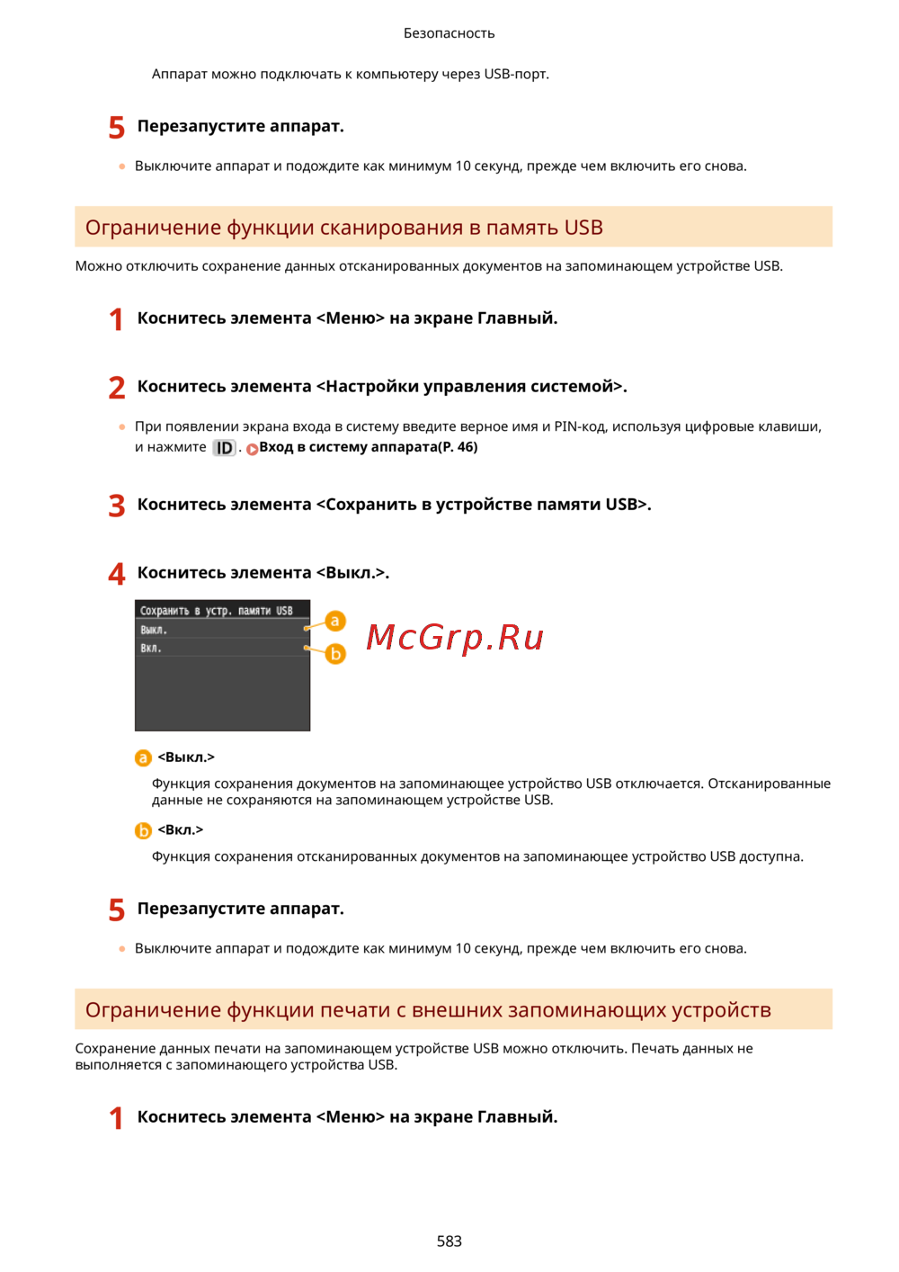 Canon i-Sensys MF416dw Лазерный \ светодиодный, Серый, Черно-белая, А4 — как отключить сохранение данных на USB-устройстве [593/949]