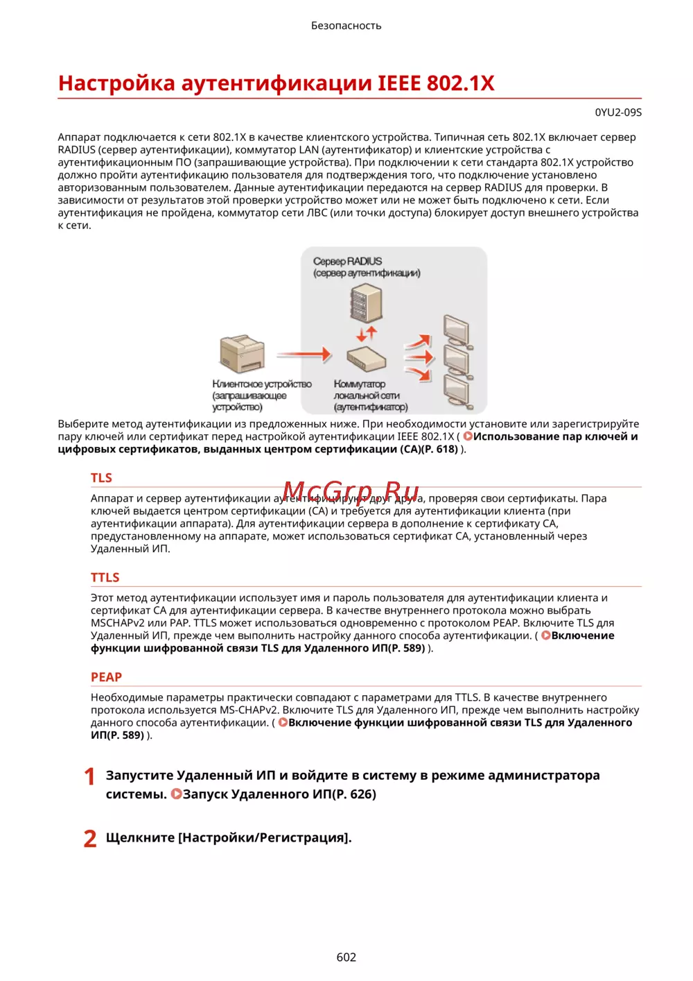 Canon i-Sensys MF416dw Лазерный \ светодиодный, Серый, Черно-белая, А4 — настройка аутентификации IEEE 802.1X для сетевых устройств [612/949]