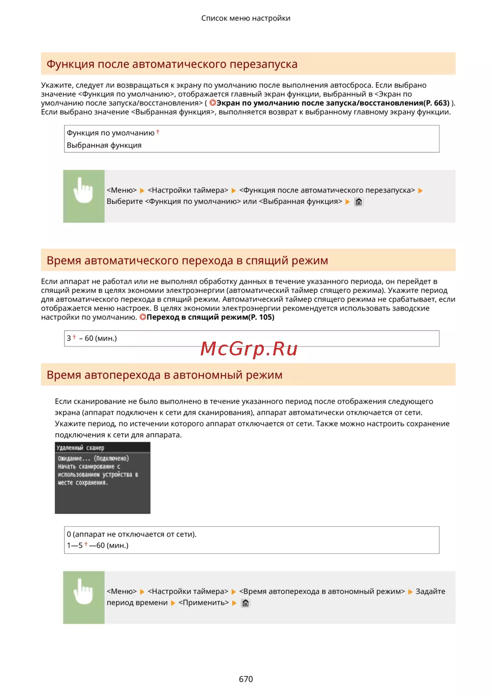 Canon i-Sensys MF416dw Лазерный \ светодиодный, Серый, Черно-белая, А4 — настройки автоматического перезапуска и таймера для устройств [680/949]