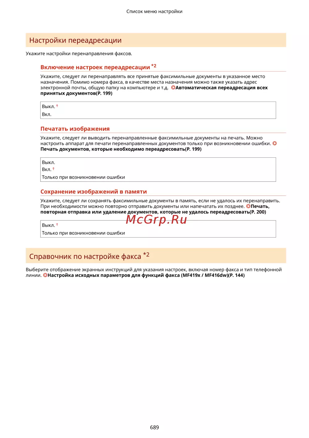 Canon i-Sensys MF416dw Лазерный \ светодиодный, Серый, Черно-белая, А4 — настройки переадресации факсов: руководство по настройке [699/949]
