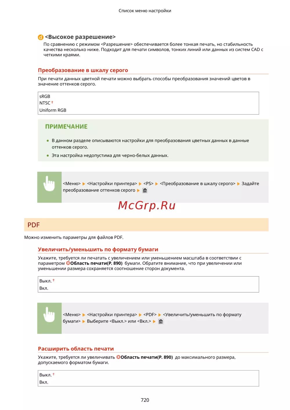 Узнайте о настройках печати с высоким разрешением, преобразовании в оттенки серого и изменении параметров для PDF. Оптимизируйте качество печати для различных задач.