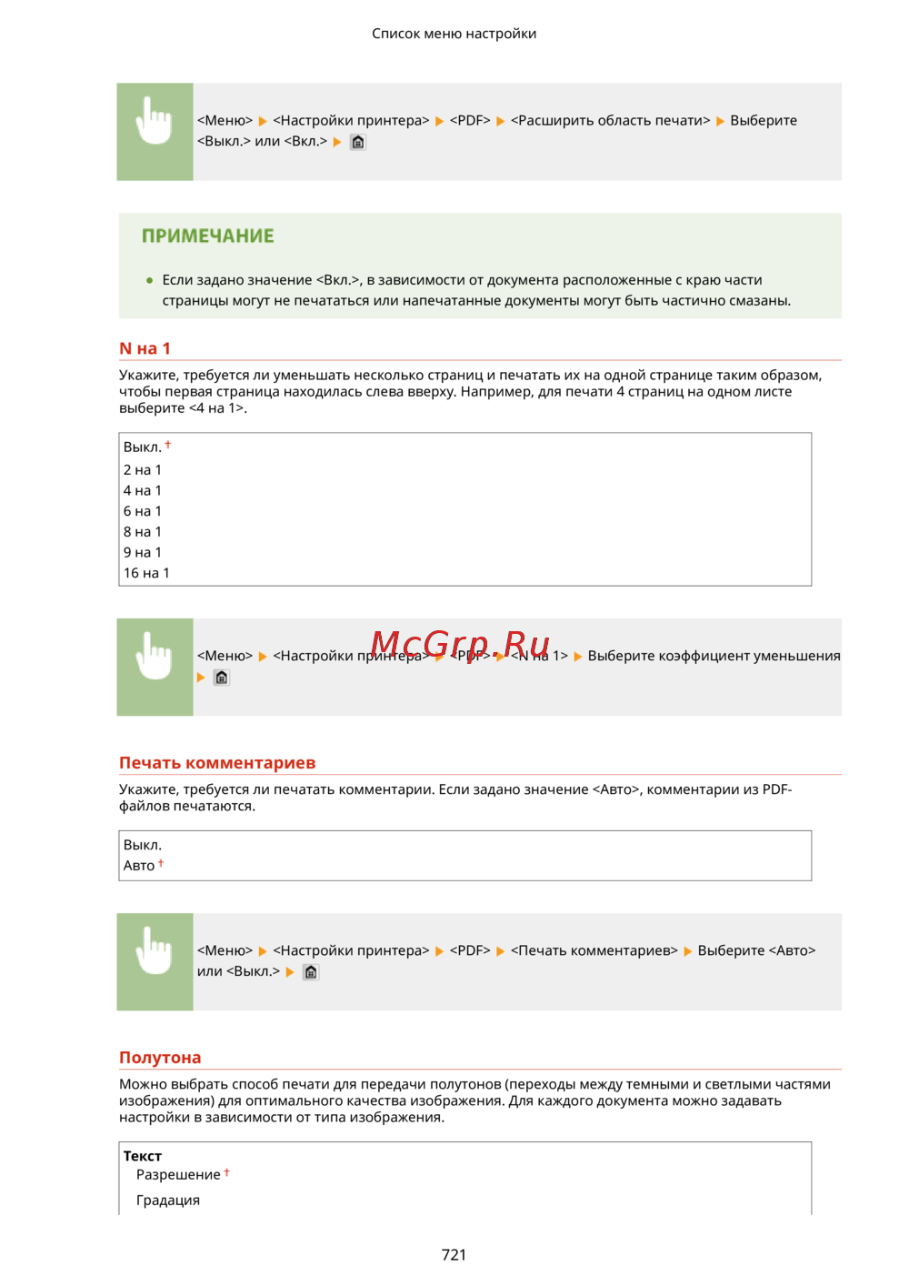 Canon i-Sensys MF416dw Лазерный \ светодиодный, Серый, Черно-белая, А4 — настройки печати: расширение области, N на 1, комментарии и полутоны [731/949]