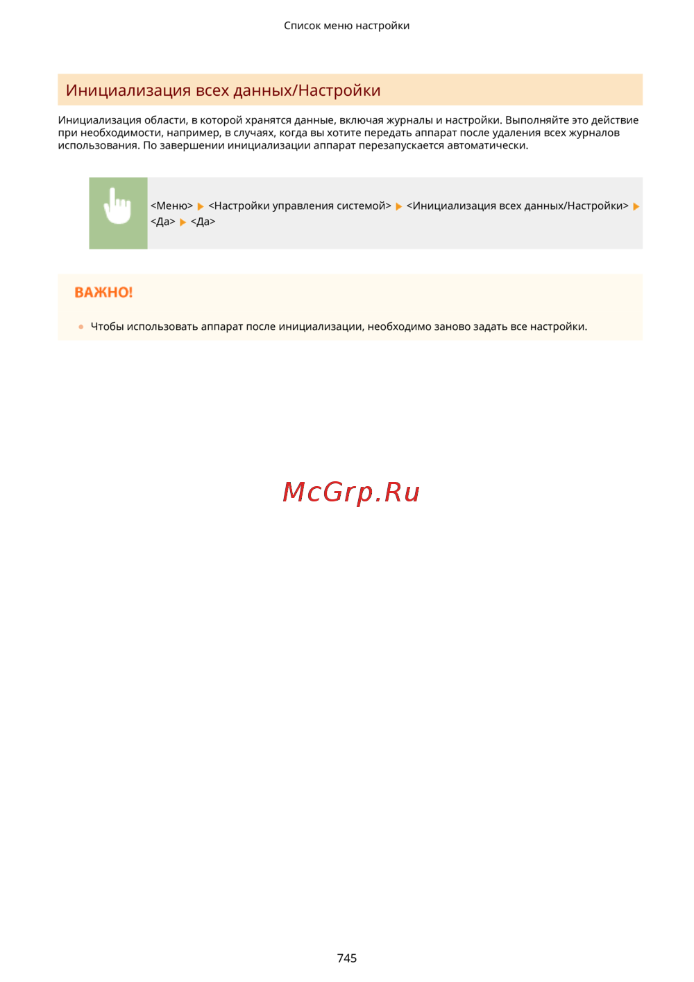 Canon i-Sensys MF416dw Лазерный \ светодиодный, Серый, Черно-белая, А4 — инициализация данных и настроек устройства: пошаговое руководство [755/949]