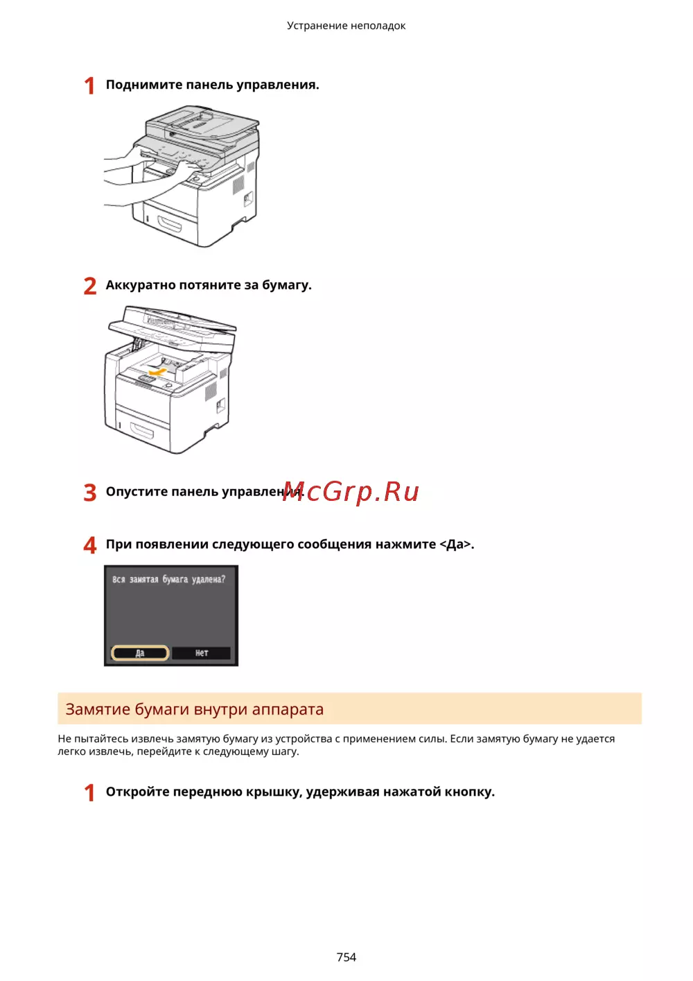 Canon i-Sensys MF416dw Лазерный \ светодиодный, Серый, Черно-белая, А4 [764/949] Замятие бумаги внутри аппарата