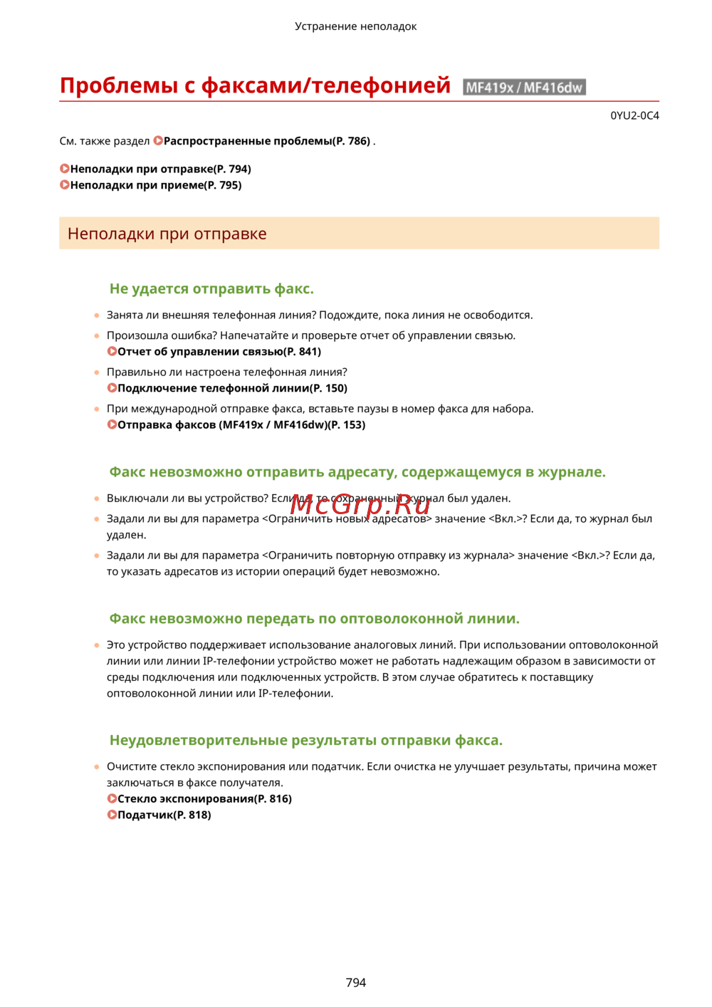 Неполадки при отправке(P. 794)