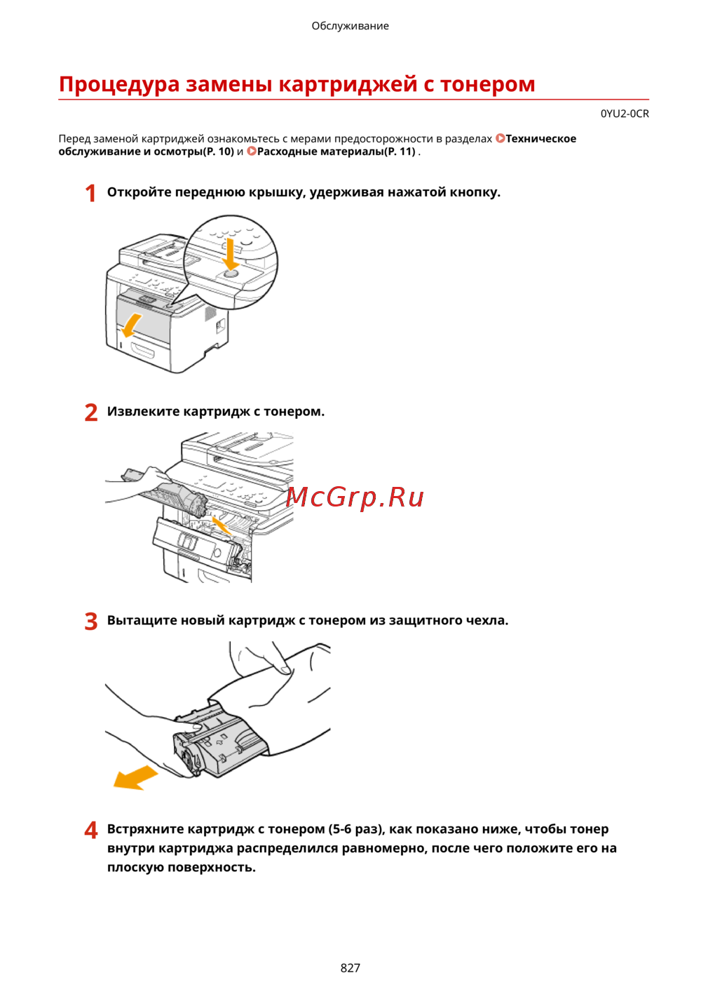 Canon i-Sensys MF416dw Лазерный \ светодиодный, Серый, Черно-белая, А4 — инструкция по замене картриджей с тонером для принтеров [837/949]