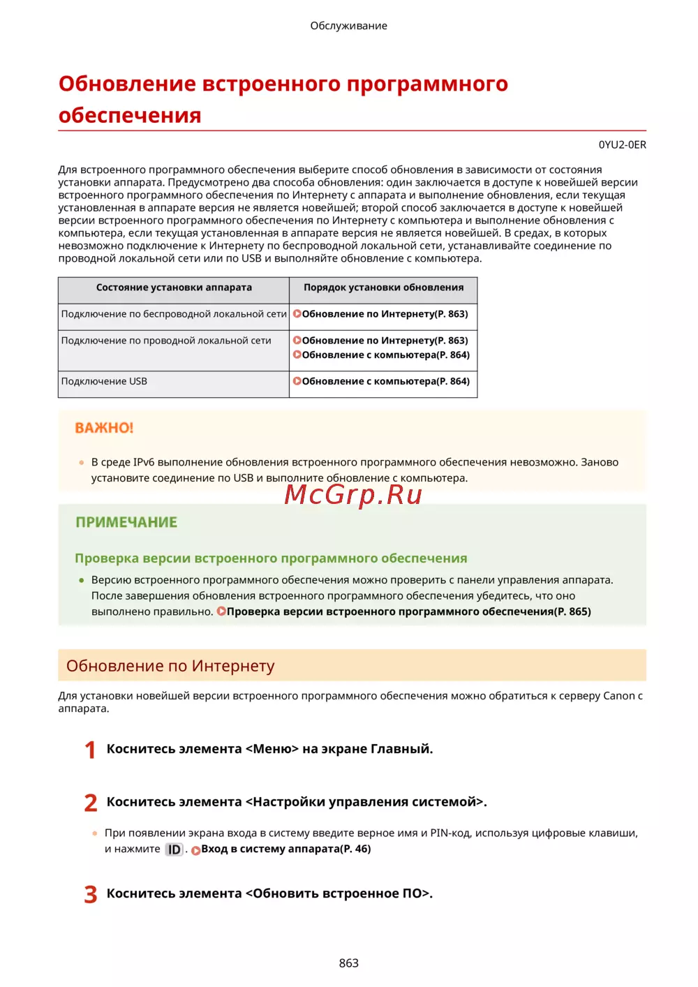 Подключение по проводной локальной сети Обновление по Интернету(P. 863)