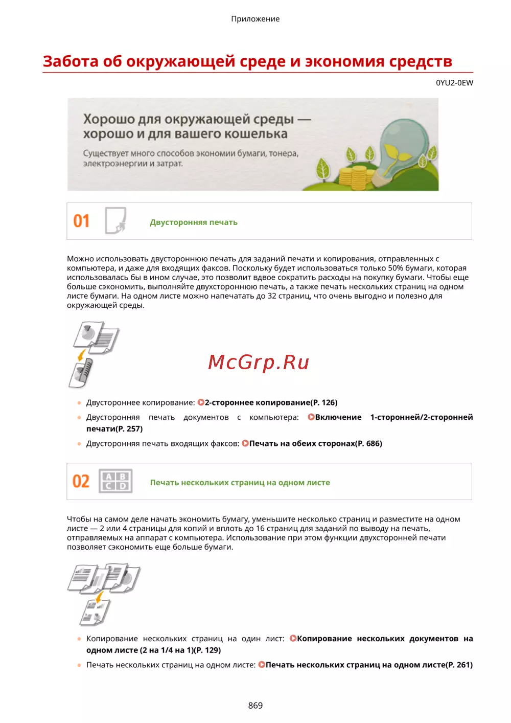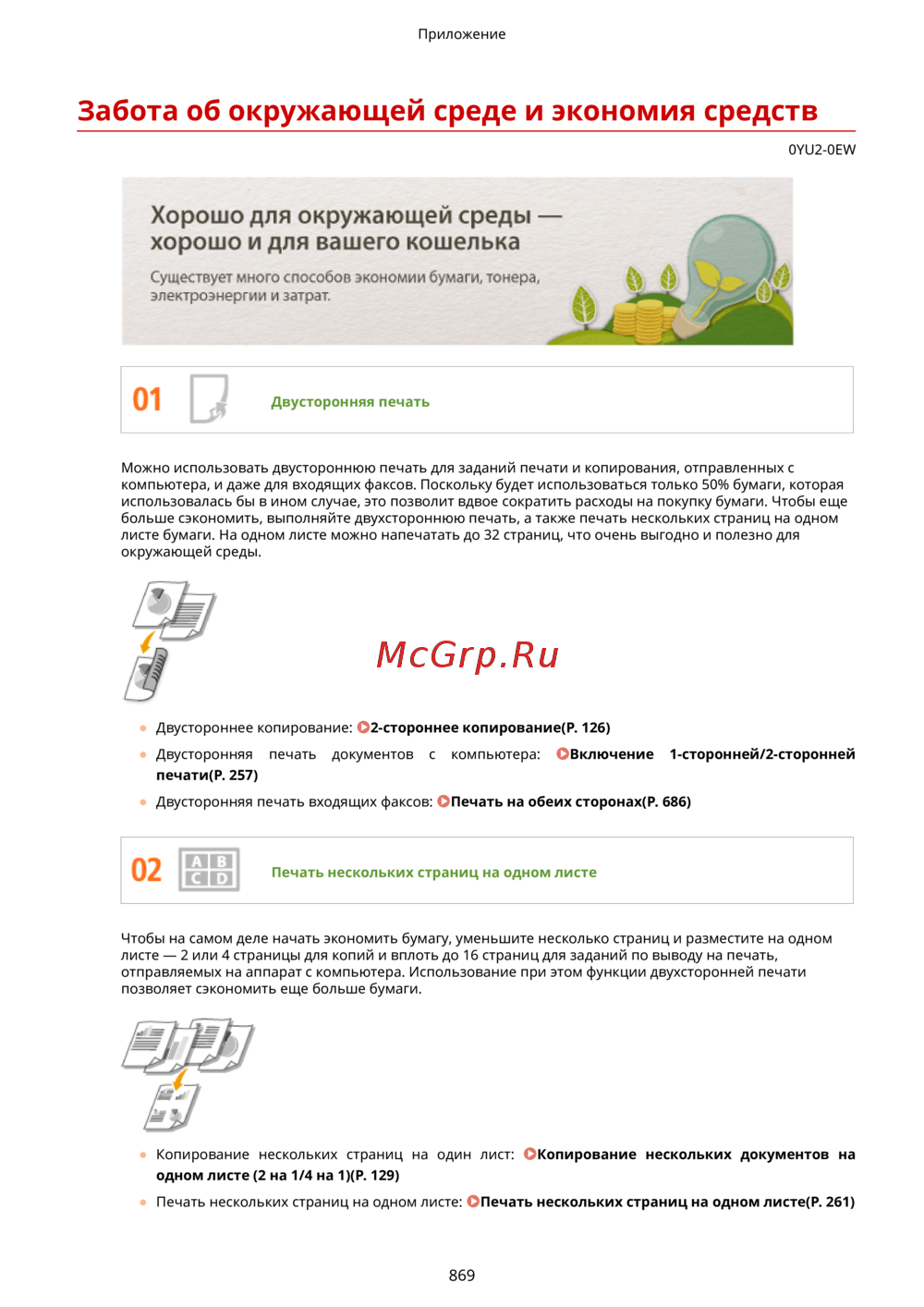 больше сэкономить, выполняйте двухстороннюю печать, а также печать нескольких страниц на одном