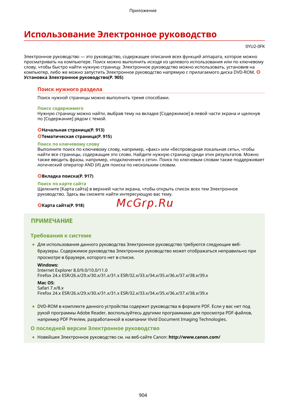 - Перечисленные ниже руководства входят в комплект поставки устройства обращайтесь к ним при необходимости p.913