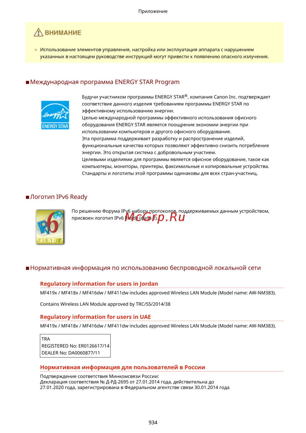 - Нормативная информация по использованию беспроводной локальной сети p.944