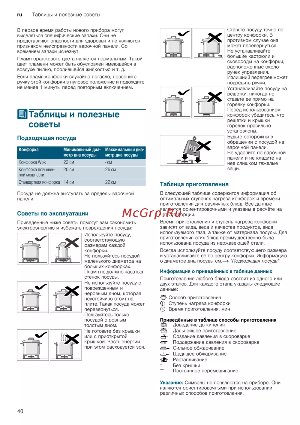 о диаметре дна посуды см.~ "Подходящая посуда"