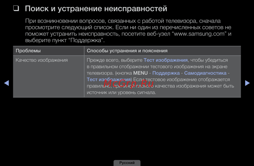 - При возникновении вопросов связанных с работой телевизора сначала просмотрите следующий список если ни один из перечисленных советов не поможет устранить неисправность посетите веб узел www samsung com и выберите пункт поддержка p.106