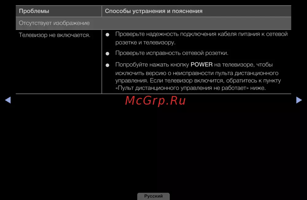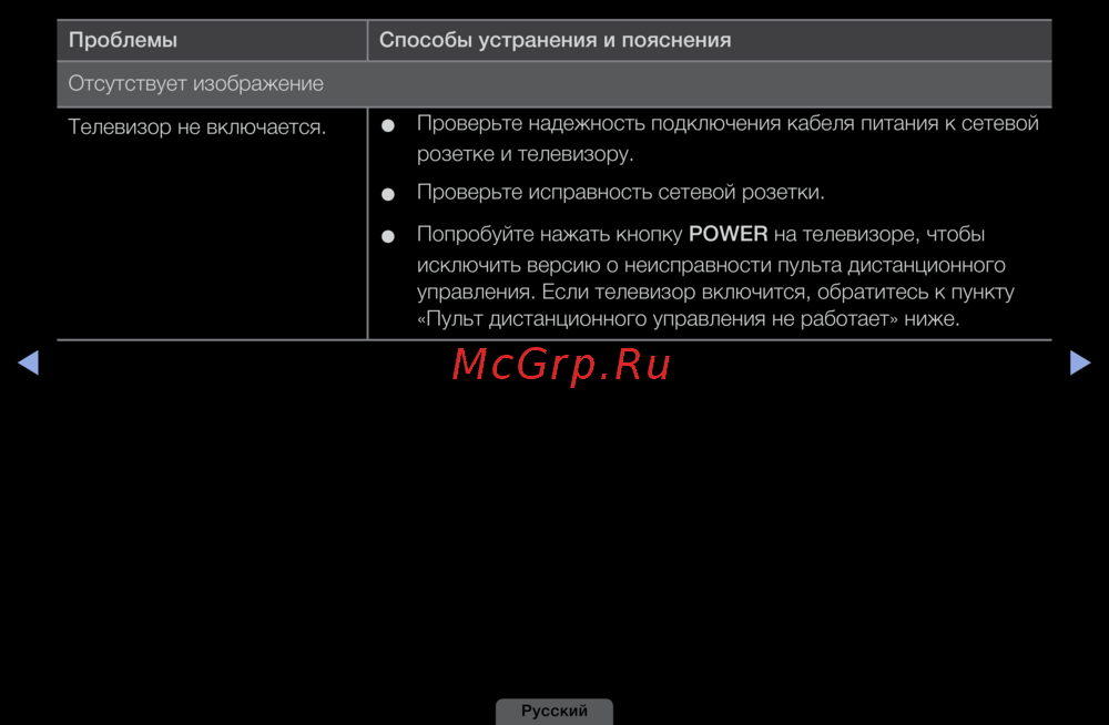 - При возникновении вопросов связанных с работой телевизора сначала просмотрите следующий список если ни один из перечисленных советов не поможет устранить неисправность посетите веб узел www samsung com и выберите пункт поддержка p.106