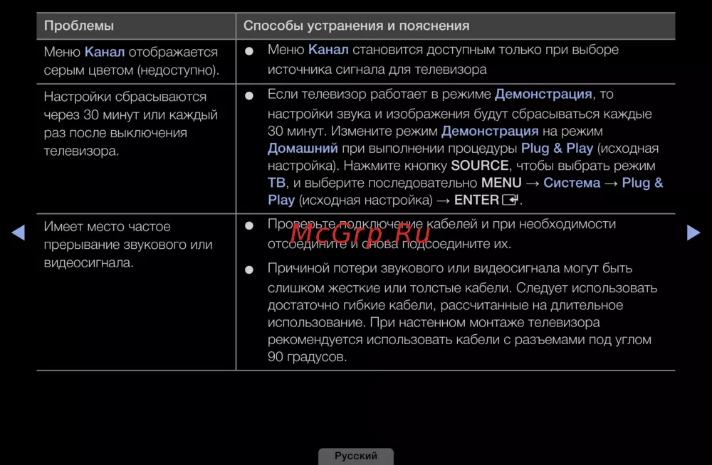 - При возникновении вопросов связанных с работой телевизора сначала просмотрите следующий список если ни один из перечисленных советов не поможет устранить неисправность посетите веб узел www samsung com и выберите пункт поддержка p.106
