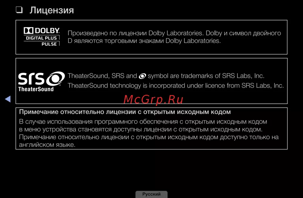 Произведено по лицензии Dolby Laboratories. Dolby и символ двойного