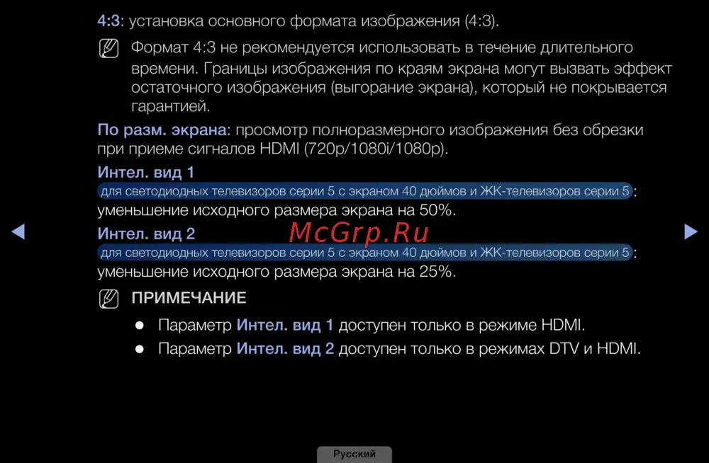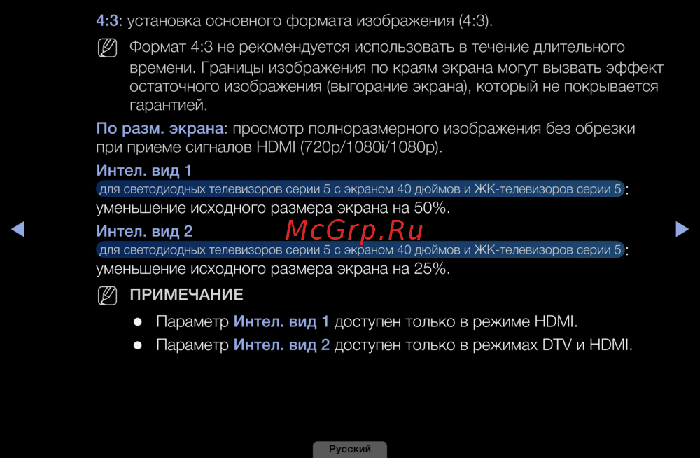 Формат 4:3 не рекомендуется использовать в течение длительного