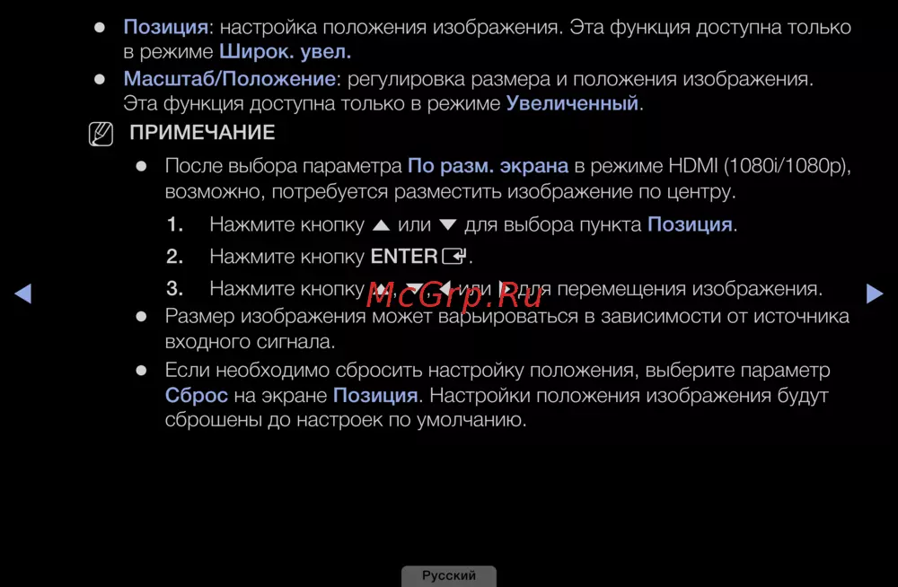 Samsung UE-40 D5003BW — настройка положения и масштаба изображения на экране [32/123]