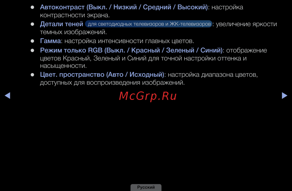 Samsung UE-40 D5003BW — настройки контрастности и цветопередачи для телевизоров [35/123]