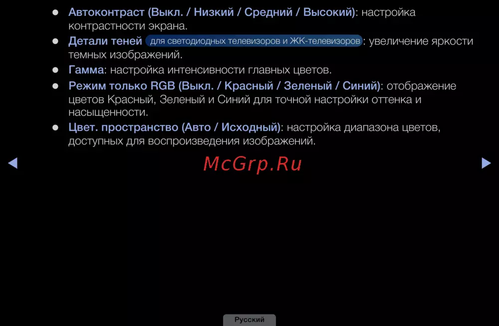 Узнайте, как настроить контрастность, яркость теней и цветовое пространство на вашем телевизоре для улучшения качества изображения.