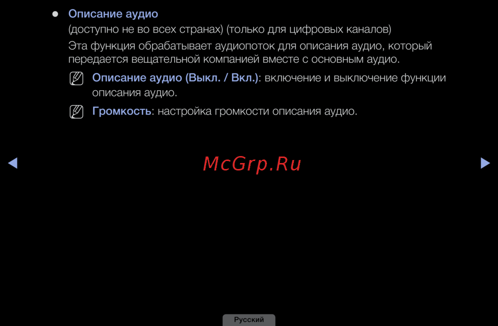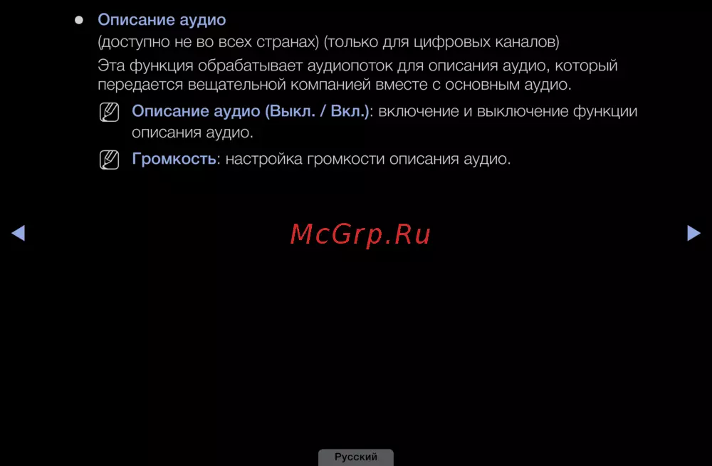 Описание❑аудио❑(Выкл.❑/❑Вкл.): включение и выключение функции