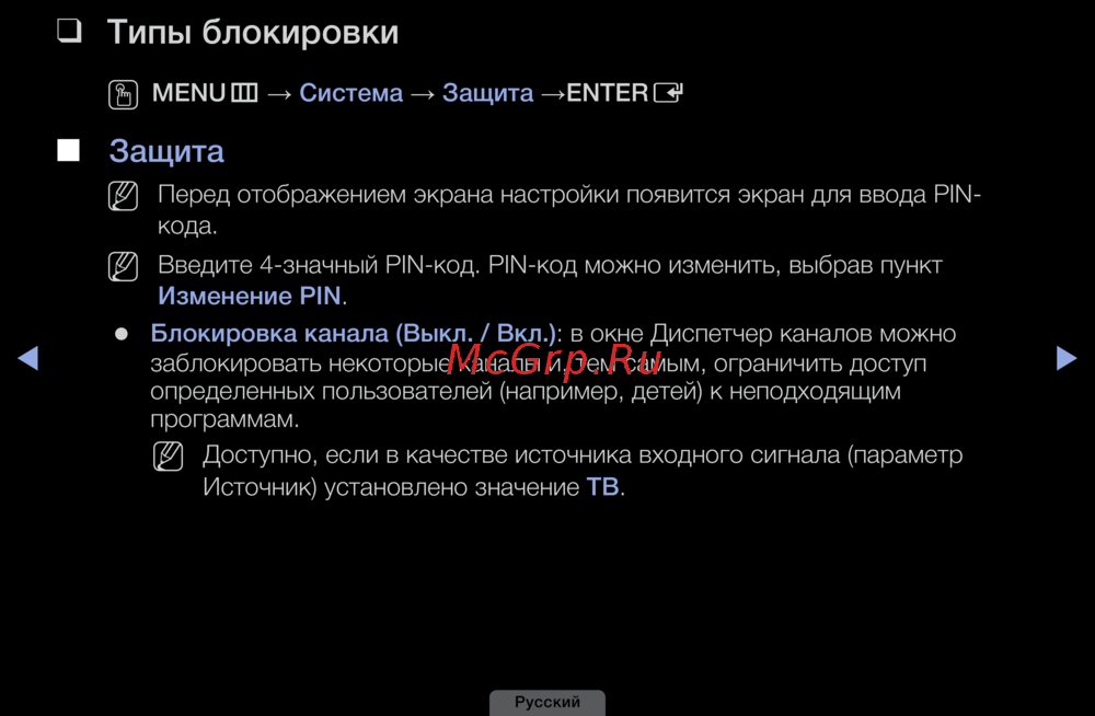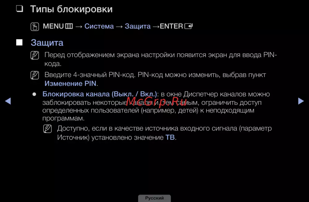 Узнайте, как настроить блокировку каналов и защиту с помощью PIN-кода. Ограничьте доступ к неподходящим программам для детей и других пользователей.