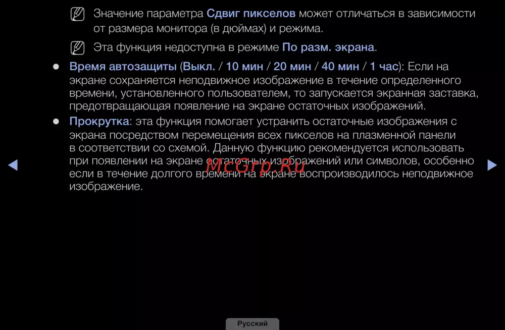 Samsung UE-40 D5003BW — настройки экрана: защита от остаточных изображений и прокрутка [71/123]