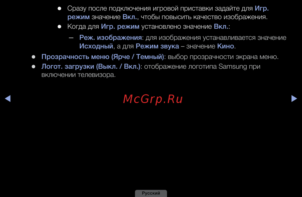 Сразу после подключения игровой приставки задайте для Игр.❑