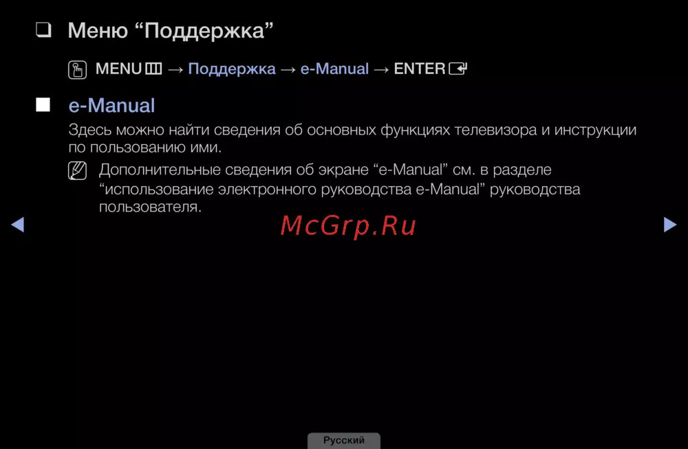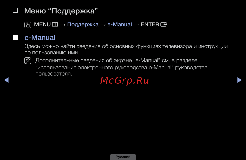 Дополнительные сведения об экране “e-Manual” см. в разделе