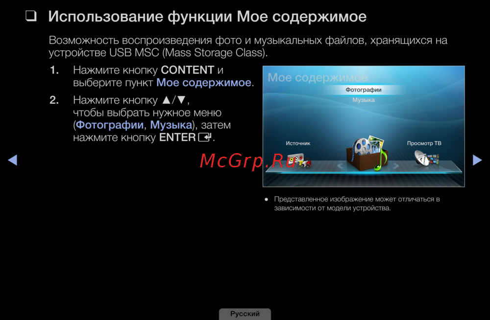 - С помощью кнопок перейдите к нужному файлу а затем нажмите кнопку enter e начнется воспроизведение файла в зависимости от способа перехода к экрану мое содержимое его вид может отличаться p.91