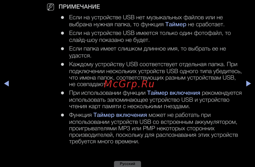Samsung UE-40 D5800 VW — рекомендации по использованию USB устройств и функции Таймер [110/210]