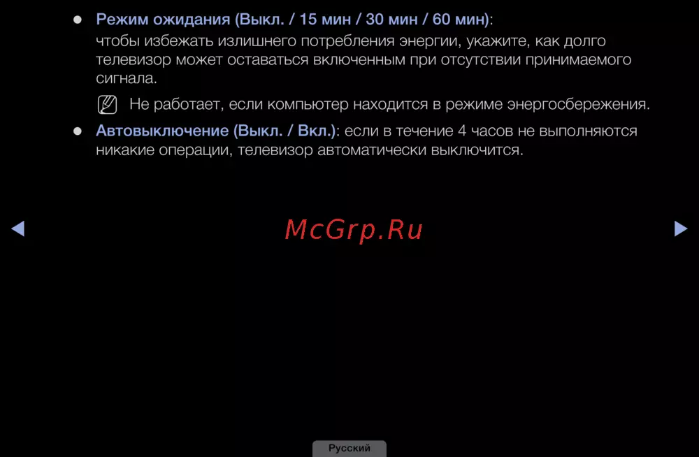 Режим❑ожидания❑(Выкл.❑/❑15❑мин❑/❑30❑мин❑/❑60❑мин):