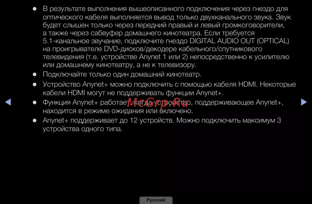 Anynet+ поддерживает до 12 устройств. Можно подключить максимум 3
