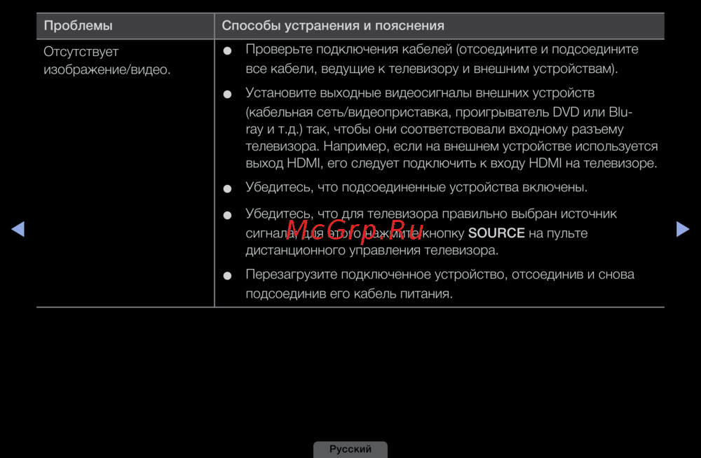 - При возникновении вопросов связанных с работой телевизора сначала просмотрите следующий список если ни один из перечисленных советов не поможет устранить неисправность посетите веб узел www samsung com и выберите пункт поддержка p.191