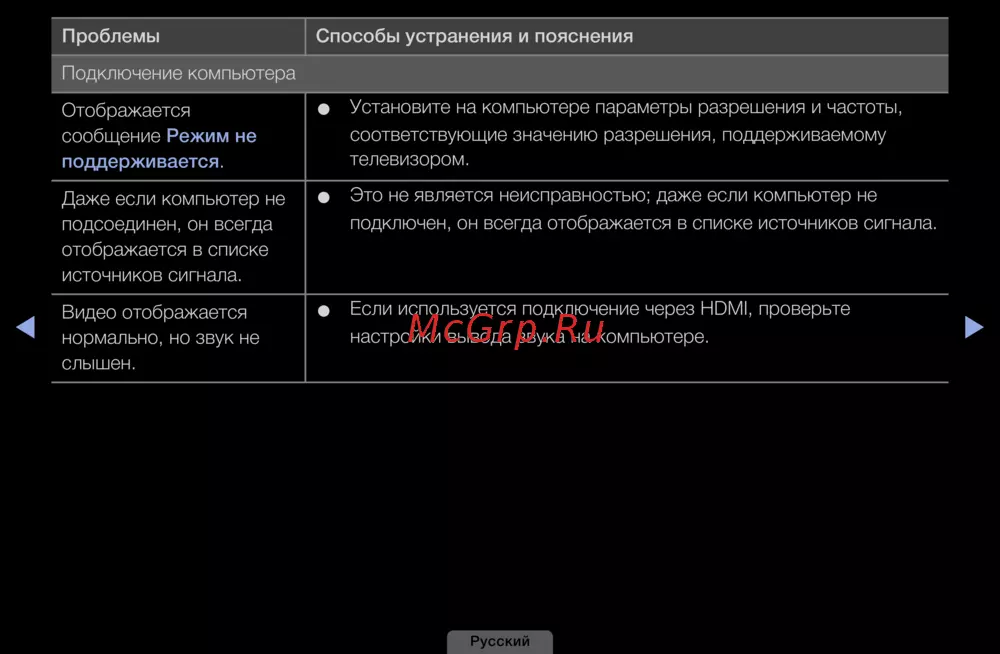 - При возникновении вопросов связанных с работой телевизора сначала просмотрите следующий список если ни один из перечисленных советов не поможет устранить неисправность посетите веб узел www samsung com и выберите пункт поддержка p.191
