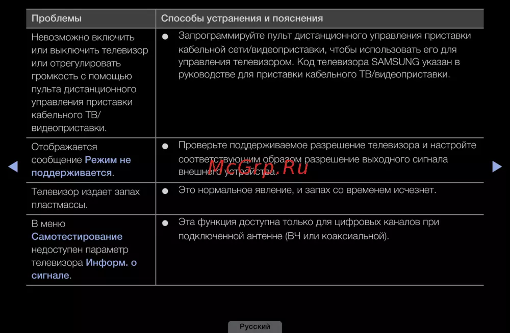 - При возникновении вопросов связанных с работой телевизора сначала просмотрите следующий список если ни один из перечисленных советов не поможет устранить неисправность посетите веб узел www samsung com и выберите пункт поддержка p.191