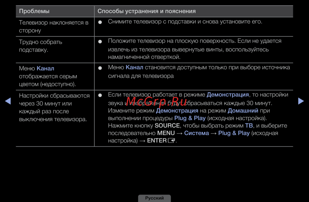- При возникновении вопросов связанных с работой телевизора сначала просмотрите следующий список если ни один из перечисленных советов не поможет устранить неисправность посетите веб узел www samsung com и выберите пункт поддержка p.191