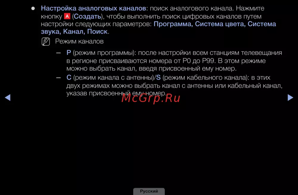 Настройка❑аналоговых❑каналов: поиск аналогового канала. Нажмите