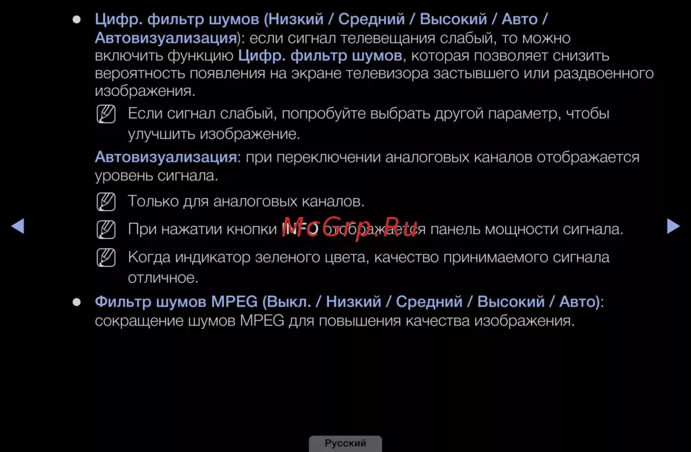 Узнайте, как использовать цифровые фильтры шумов и автовизуализацию для улучшения качества изображения на телевизоре. Настройте параметры для лучшего сигнала.