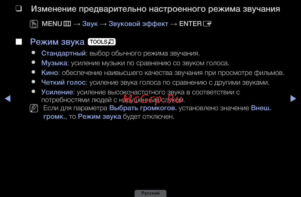 Изменение❑предварительно❑настроенного❑режима❑звучания