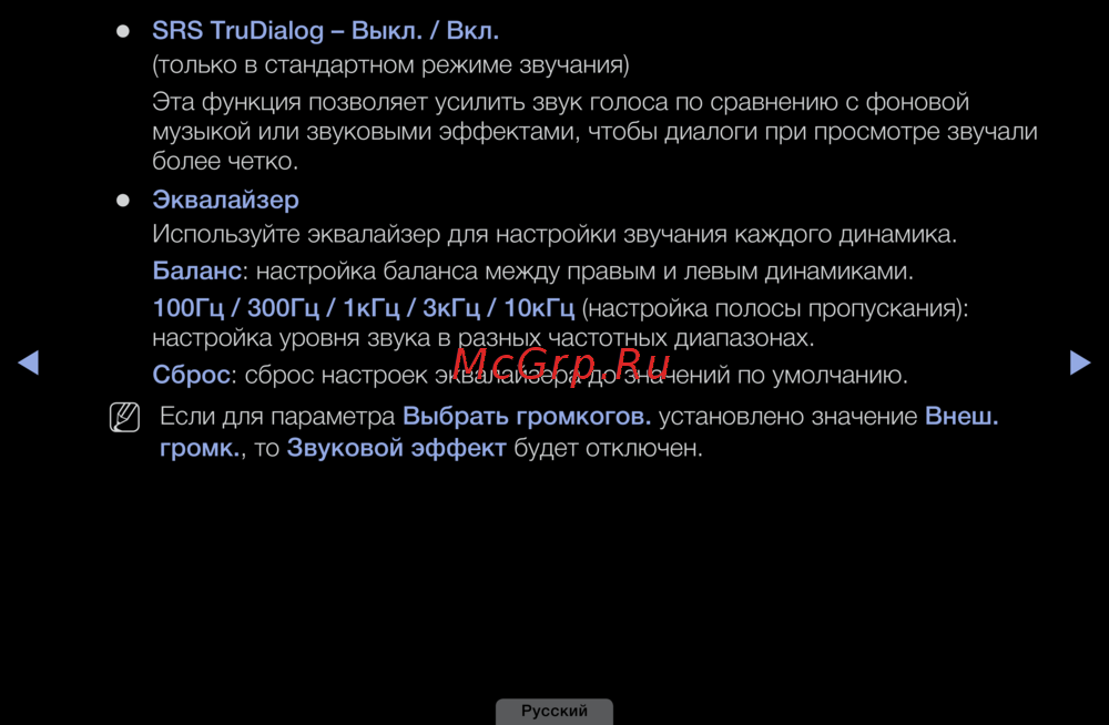SRS❑TruDialog❑–❑Выкл.❑/❑Вкл.