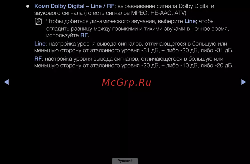 Samsung UE-40 D5800 VW — настройка звуковых сигналов: Line и RF для Dolby Digital [72/210]