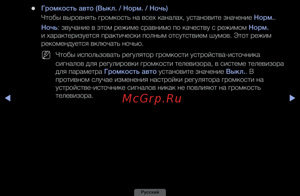 Чтобы выровнять громкость на всех каналах, установите значение Норм..
