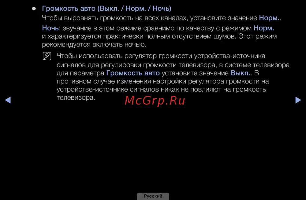 Громкость❑авто❑(Выкл.❑/❑Норм.❑/❑Ночь)