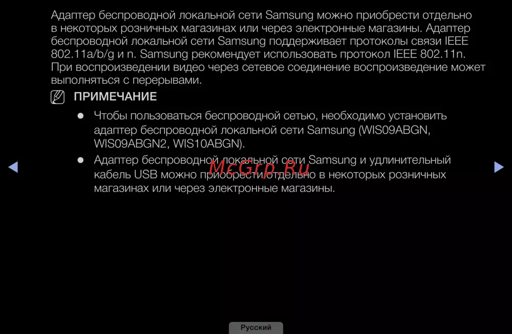 беспроводной локальной сети Samsung поддерживает протоколы связи IEEE