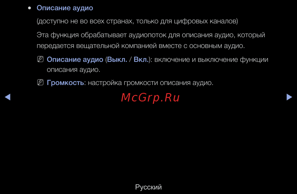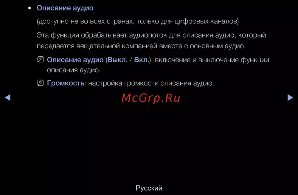 Описание аудио (Выкл. / Вкл.): включение и выключение функции
