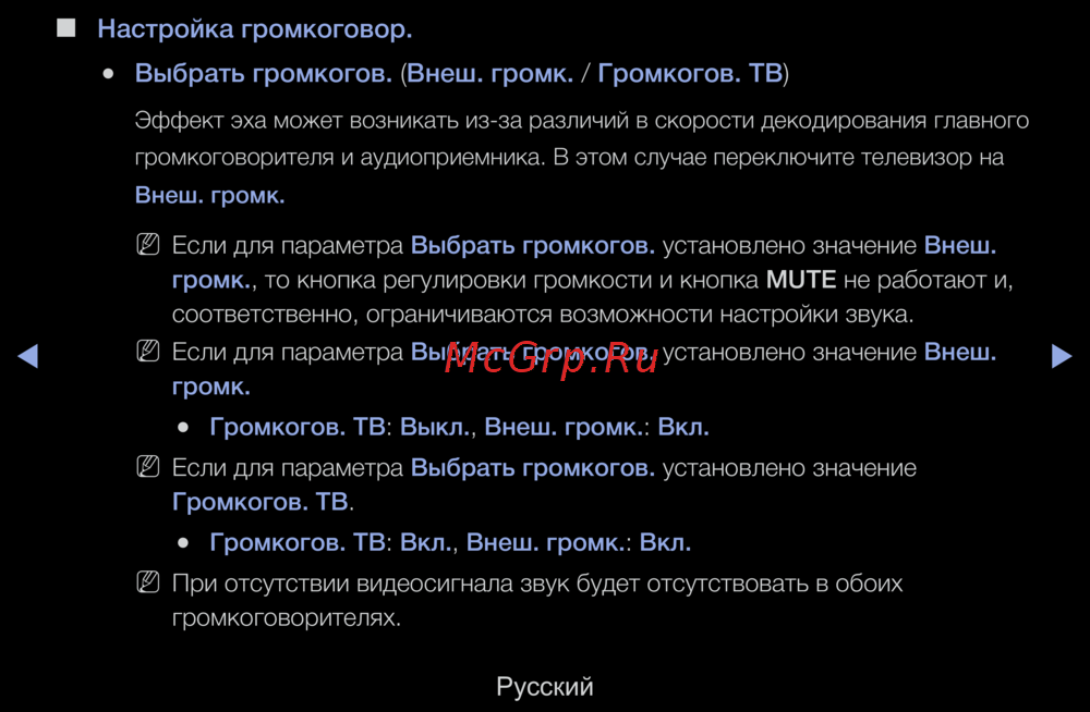 Громкогов. ТВ: Выкл., Внеш. громк.: Вкл.