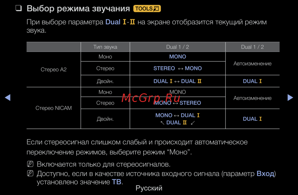 Samsung UE-40 D5520RW — выбор режима звучания: стерео и моно для оптимального звука [109/319]